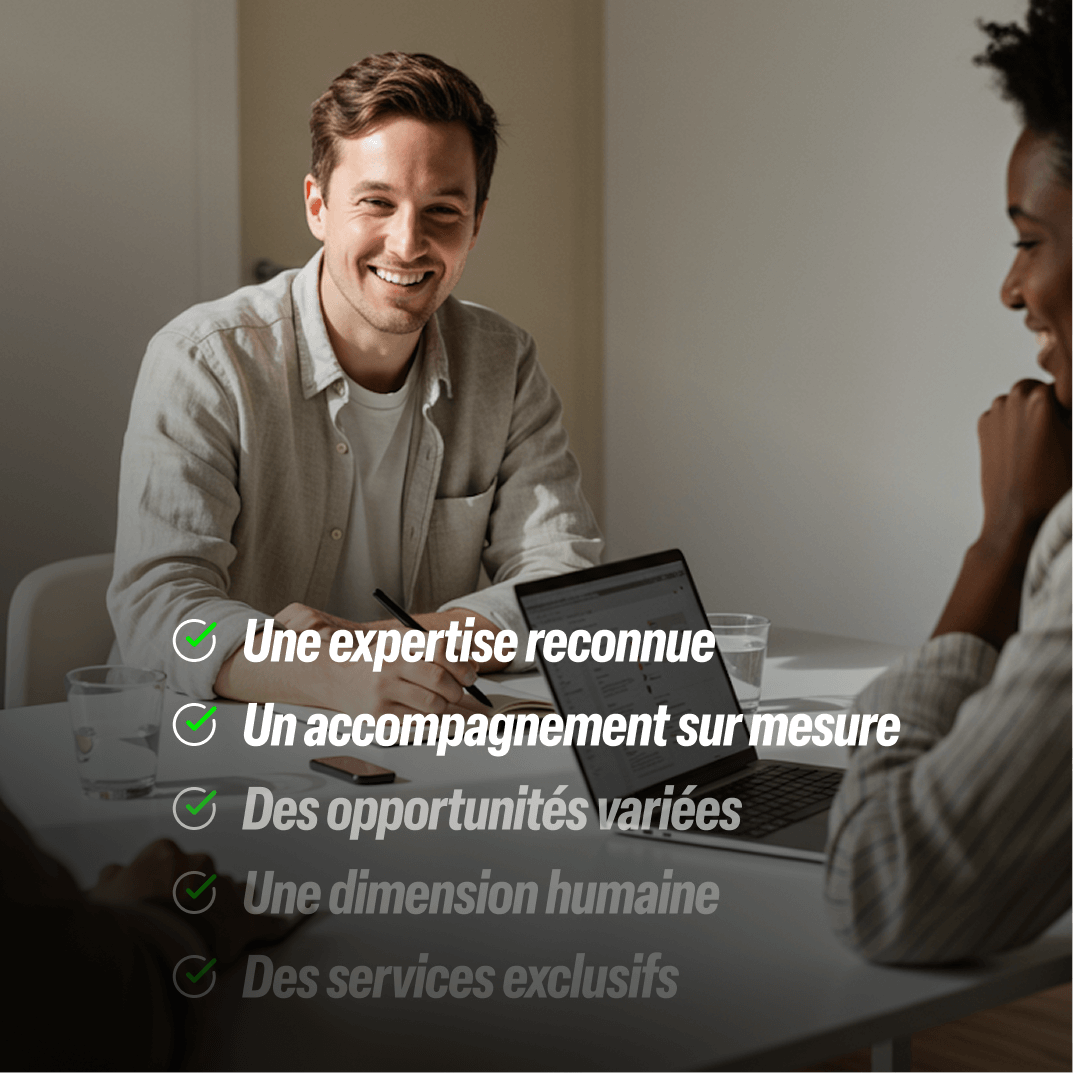 Nous veillons à la transparence des missions et à la clarté des échanges. Notre équipe vous accompagne à chaque étape, avec écoute, réactivité et confidentialité.